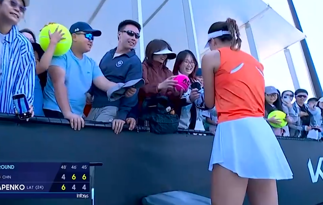 赢球之后的王欣瑜绽放了灿烂甜美的微笑,她实力宠粉,到了场边给球迷们签名,还和球迷们拍照留念。王欣瑜又美又能打,同时又非常和善,真是优质偶像。