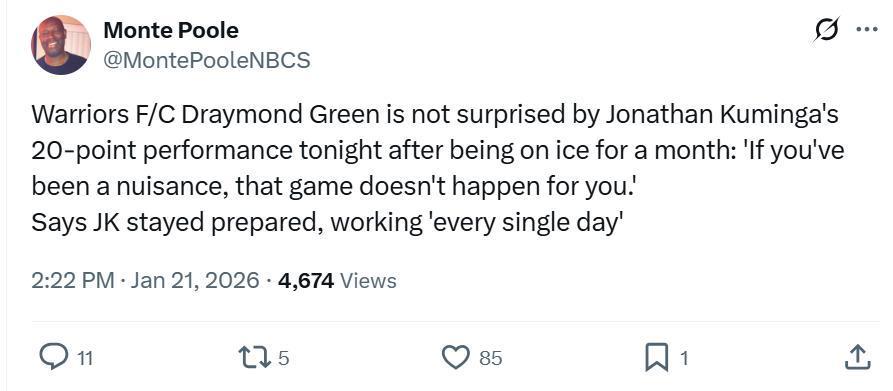 此前已经彻底与勇士队闹翻,被科尔连续DNP16场比赛的库明加自然是其中一位。